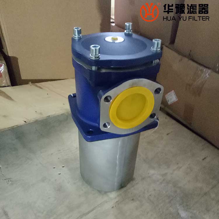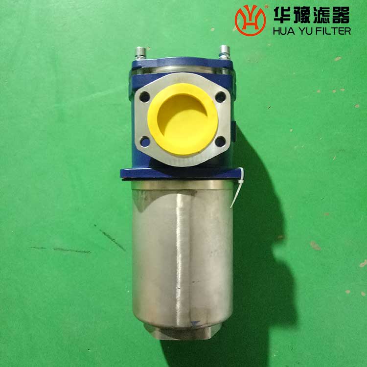 該過濾器的濾芯采用化纖過濾材質(zhì),具有過濾精度高,通油能力大,初始壓力損失小,納污量大等優(yōu)點,并裝有壓差發(fā)訊器及旁通閥。當濾芯堵塞到進出油口壓差為0.35MPa時,便發(fā)出開關信號,此時應更換濾芯。如果不能馬上停機或無人來更換濾芯,裝在濾芯上部的旁通閥會自動開啟,以保護系統(tǒng)。