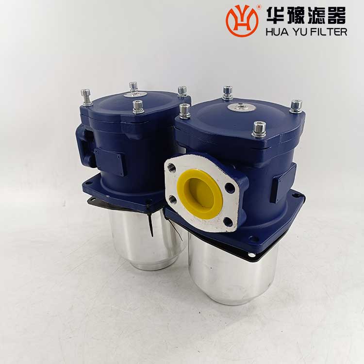 該過濾器的濾芯采用化纖過濾材質(zhì),具有過濾精度高,通油能力大,初始壓力損失小,納污量大等優(yōu)點,并裝有壓差發(fā)訊器及旁通閥。當濾芯堵塞到進出油口壓差為0.35MPa時,便發(fā)出開關(guān)信號,此時應(yīng)更換濾芯。如果不能馬上停機或無人來更換濾芯,裝在濾芯上部的旁通閥會自動開啟,以保護系統(tǒng)。