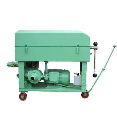 板框濾油機結構,是由齒輪泵、板框濾床底盤、電氣裝置、安全閥、油樣閥等部件組成;由電動機直接帶動齒輪轉動將油池中油液吸入初濾器、進入油泵,在齒輪泵的壓力下,將油液輸入濾床過濾,最后匯集到出油口輸出。安全閥是該機的保證裝置,能自動控制壓力,保證設備安全;回油閥能控制油盤中的油面高度民主,防止油液從油盤中溢出;油樣閥供取油液標樣之用。